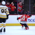Photos from the Chicago Blackhawks’ 5-2 loss to the Boston Bruins on Jan. 17, 2026, at the United Center. Bruins goaltender Joonas Korpisalo, from left, defenseman Mason Lohrei and center Fraser Minten celebrate after their 5-2 victory over the Blackhawks on Jan. 17, 2026, at the United Center. (Chris Sweda/Chicago Tribune) Blackhawks center Connor Bedard (98) reacts as the … [Read more...] about Photos: Boston Bruins 5, Chicago Blackhawks 2