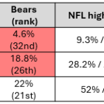 This is the start of a 3-part series examining Chicago’s pass rush in 2023 and what expectations should be for 2024. The content covered in each part roughly breaks down as follows: Part 1: Overall team pass rush, and the impact of trading for Montez Sweat. Part 2: Defensive end individual pass rushing efficiency. Part 3: Defensive tackle individual pass rushing efficiency, … [Read more...] about Zooming in on Chicago’s Pass Rush, Part 1: Team Performance