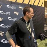 It may only be the third week of Spring training camp. And it may only be practice number eight of the scheduled 15. But there is a lot riding on Wake’s scrimmage Thursday. And head coach Jake Dickert is focused on who is stepping into that concept. A Lot Riding On Wake’s Mid-Camp Scrimmage This is not the traditional Spring scrimmage. There won’t be one of those. There will be … [Read more...] about A Lot Riding On Wake’s Mid-Camp Scrimmage