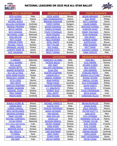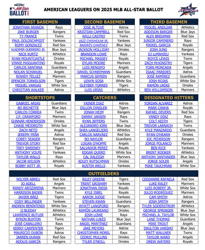 Major League Baseball released the 2025 All-Star ballot Wednesday for the game that will be played Tuesday, July 15 at Truist Park in Atlanta.
