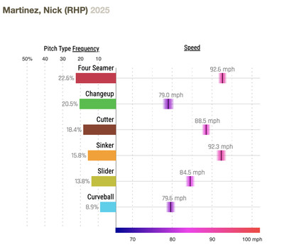 Nick Martinez parlayed a very good 2024 season into a two-year, $26 million deal last offseason, not bad for a guy who made only 16 starts (in 42 total appearances) last year, although they were mostly pretty good.
