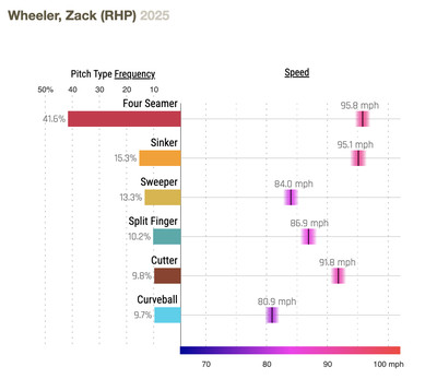 Wheeler has not faced the Cubs this year. The last time he faced them, July 3, 2024 at Wrigley Field, he allowed two runs in five innings. Both those runs were driven in by doubles by Pete Crow-Armstrong.