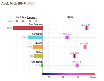 Mick Abel was the Phillies’ No. 1 pick (15th overall) in the shortened 2020 draft out of high school in Oregon. He has been a Top 100 prospect ever since, and after 10 good starts for Triple-A Lehigh Valley this year, the Phillies called him up May 18. He threw six shutout innings vs. the Pirates that day, then was sent down again. Recalled again June 4, he threw 5⅓ innings against the Blue Jays, allowing one run. In the two starts he has 11 strikeouts and no walks.