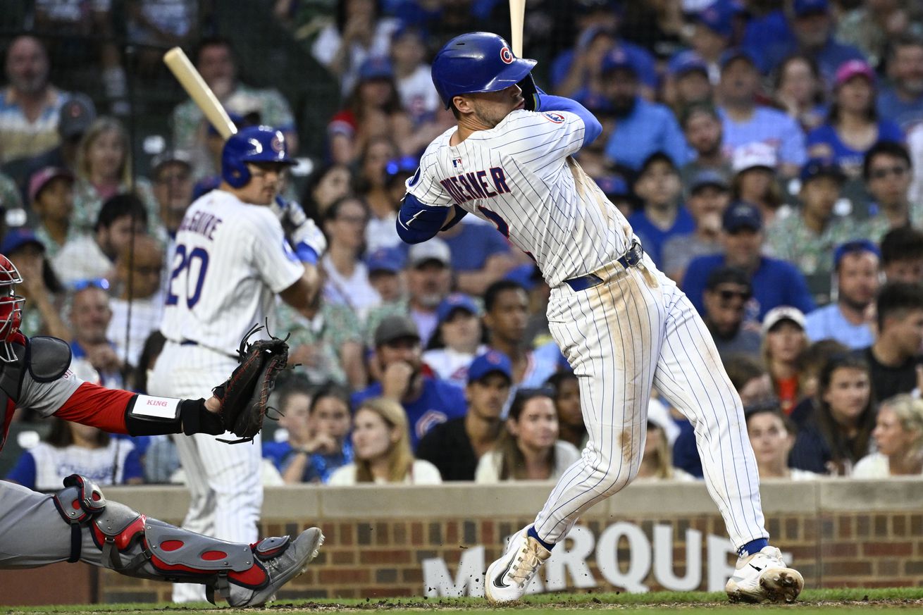 Boyd had a quicker second, in spite of a Cardinals double, and then the Cubs put more runs on the board int he bottom of the inning. Nico Hoerner led off with a double and took third on a wild pitch. One out later, Matt Shaw and Ian Happ walked to load the bases.