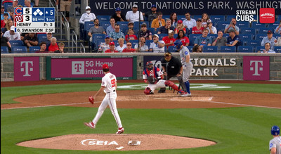 That set up one a play I’m not sure I’ve ever seen in an MLB game. Nico Hoerner, one of the best contact bats in baseball, comes to the plate with two down, the bases loaded and PCA at third. PCA knows his existence at third base is enough to cause distractions, and he decides to take advantage by dancing down the line in eyesight of Nationals reliever Cole Henry: