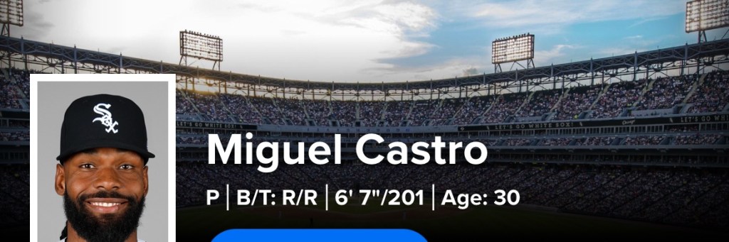2025 WHITE SOX PLAYER REVIEW: MIGUEL CASTRO (I SAID EVERYBODY!) October 23, 2025 by Sox Nerd My 2025 White Sox player review — @soxnerd style — continues with a look at MIGUEL CASTRO: *Right-hander joins Ervin Santana and Yermin Mercedes as the only natives of La Romana, Dominican Republic to pitch for the White Sox. NEXT: AARON CIVALE