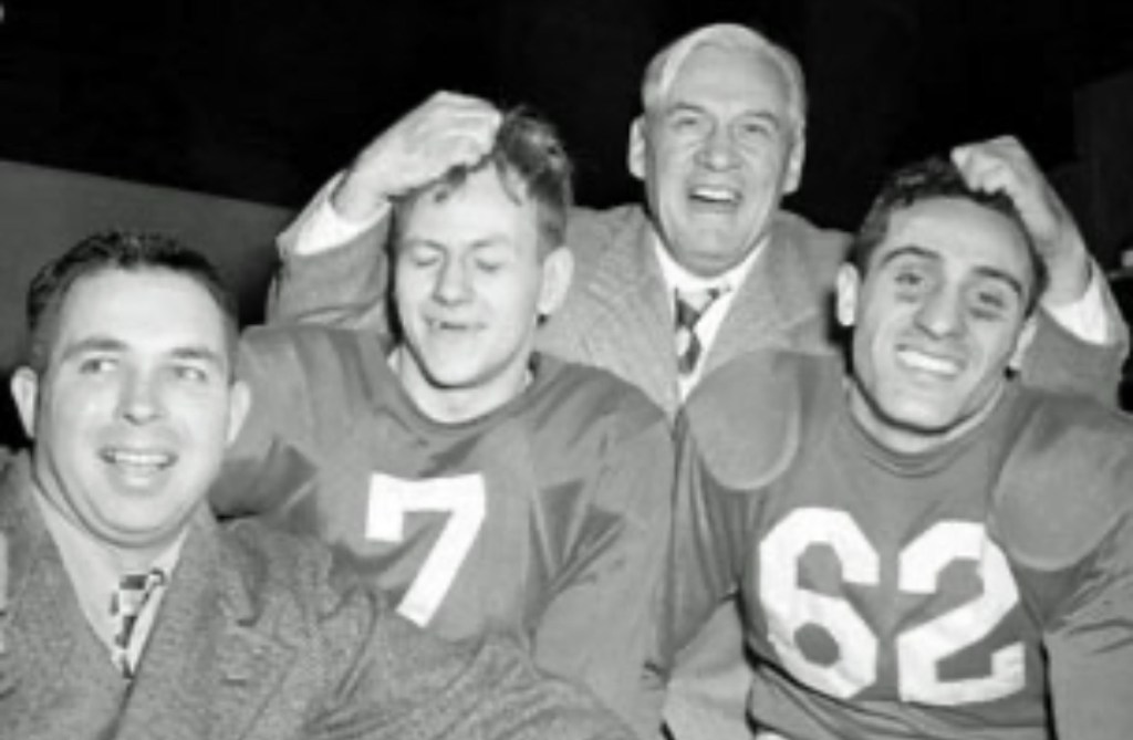*THE CARD STARS: Rookie Charlie Trippi ,of the “Million Dollar Backfiekd,” scored on a 44-yard run and a 75-yard punt return to help the Cards build an insurmountable 21-7 lead … Elmer Angsman had two 70-yard touchdown runs and finished with 159 yards on the ground