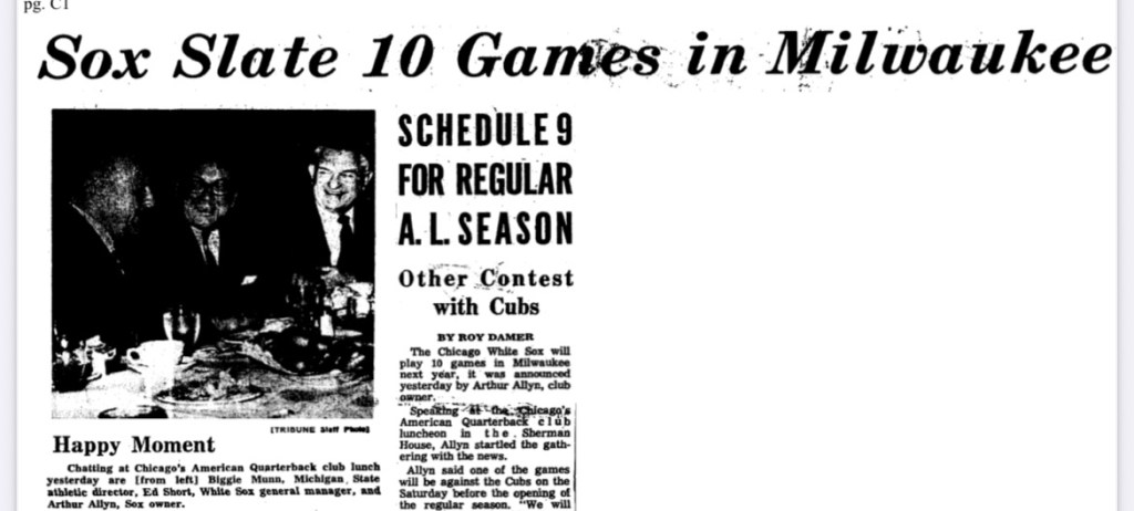 The games in 1968 drew 265,552 fans, which was close to half of the Sox home attendance that season. A year later, the Sox attracted 196,784 to their Milwaukee contests.