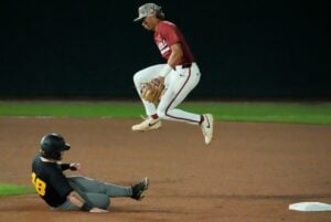 As if his last name didn’t bring enough attention to his play, Justin Lebron plays in the toughest conference in college baseball. Overshadowed by his fellow shortstop college prospect, Lebron still has the potential to be drafted number one overall. There is no doubt about his ability to play shortstop at the next level. His first quick step that gives him plus speed on the bases also allows him to get to any ball, all to go along with a strong arm. At the plate, his approach is sometimes questionable, which is why he cooled off in conference play at Alabama from nearly .340 to ending the year at .318 as a freshman. Coming in at 6’2″ and 180 pounds, he has the strength and bat speed to hit for power at the next level.
