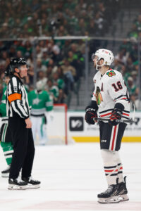 While his days of scoring 22 goals, as he did in 2023-24, may be over, he remains a fixture on Chicago’s penalty kill, wins nearly half of his draws, and has even received Selke Trophy votes during his time in Chicago.