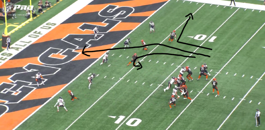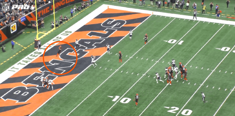 Flacco set up this play with an 11-yard shot to Ja’Marr Chase and a 19-yard completion to Andre Iosivas two plays later.