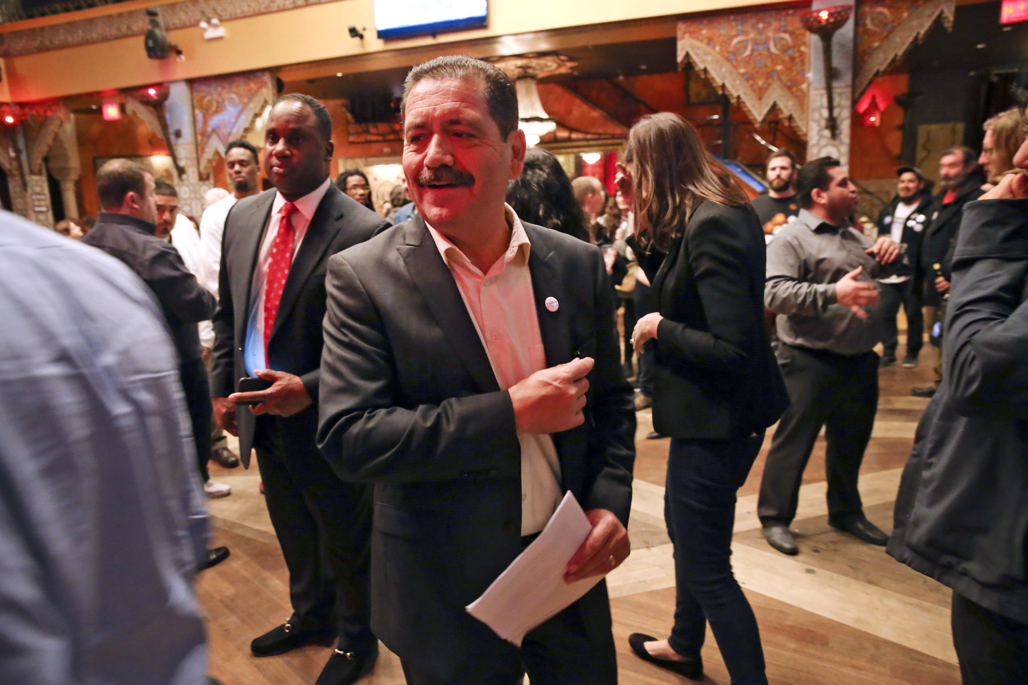 Jesus “Chuy” Garcia makes his way to the stage to thank supporters at a Bernie Sanders party at Alhambra restaurant in Chicago on Mar. 15, 2016.