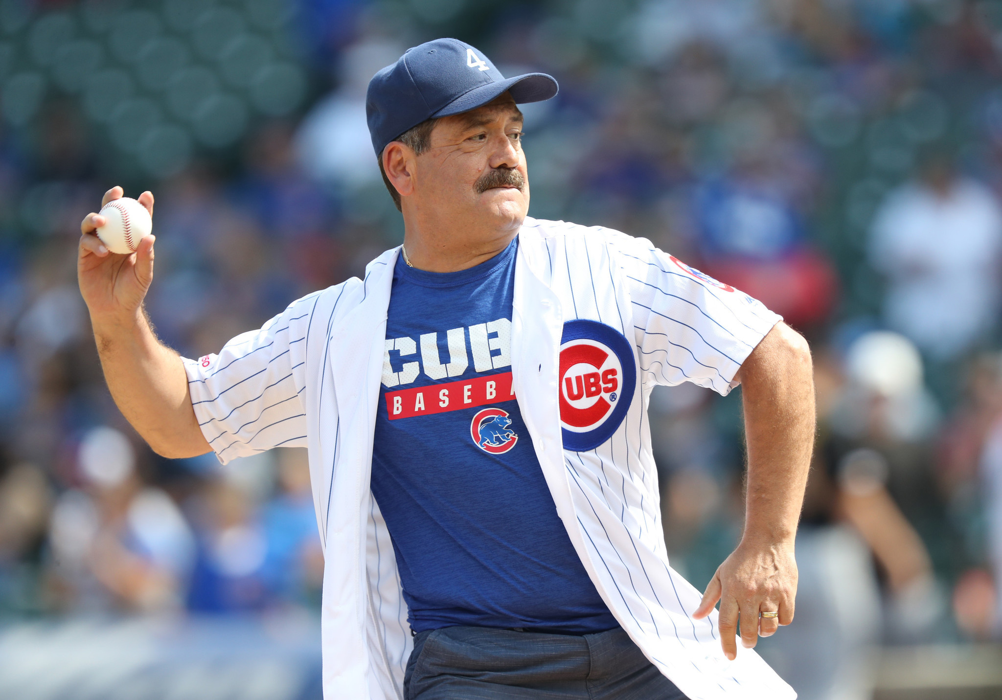 U.S. Rep. Jesus “Chuy” Garcia throws a ceremonial first pitch before the Chicago Cubs host the Pittsburgh Pirates at Wrigley Field, Sept. 15, 2019.