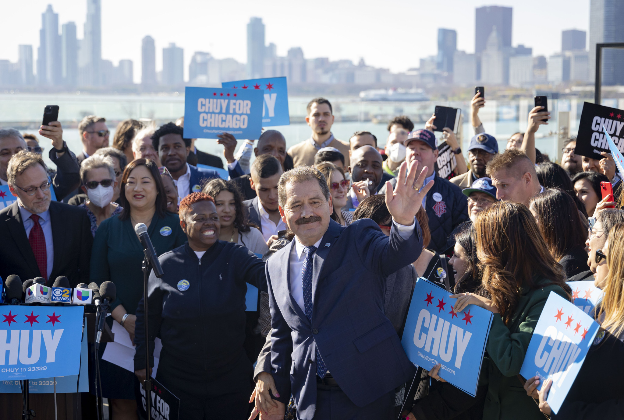 Democratic U.S. Rep. Jesús “Chuy” García declares his candidacy for Chicago mayor on Nov. 10, 2022, at Navy Pier in Chicago.